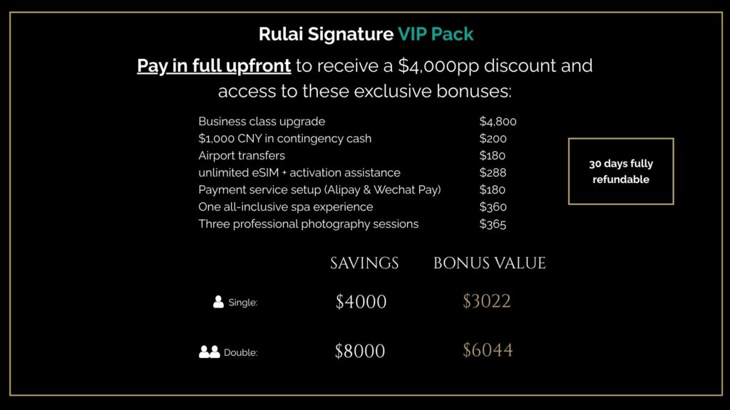 Rulai Signature VIP Pack Benefit